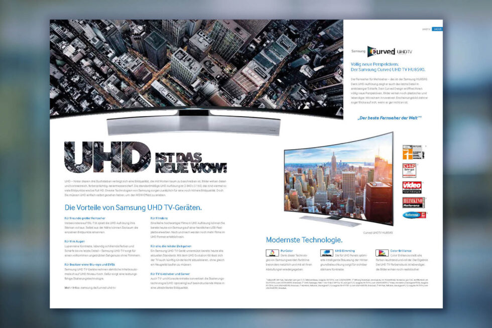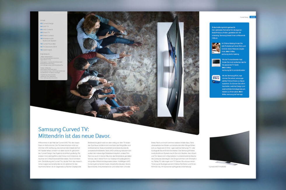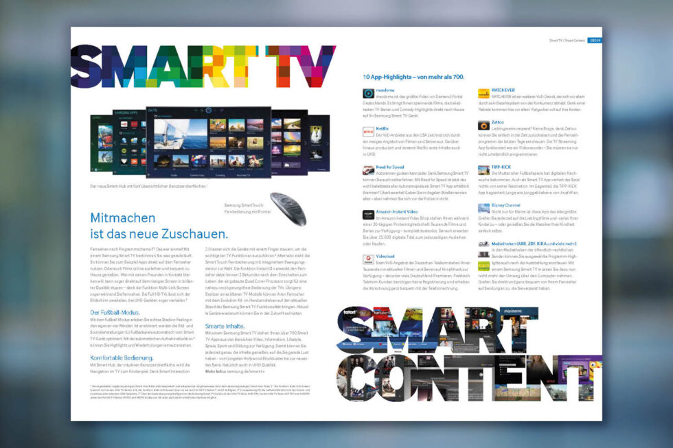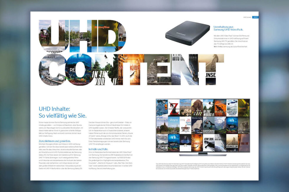 2014 habe ich für WEKA MEDIA PUBLISHING GmbH / VIDEO Magazin als Grafik-Leitung der Unterhaltungselektronik zusammen mit der Projektleiterin diese Heftbeilage für SAMSUNG gestaltet. Natürlich strikt nach SAMSUNG CI-Guidelines.