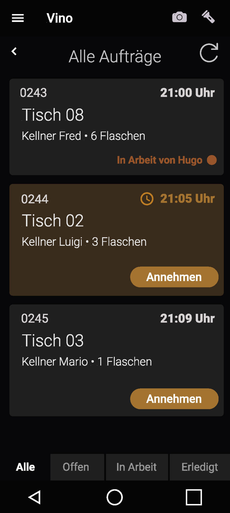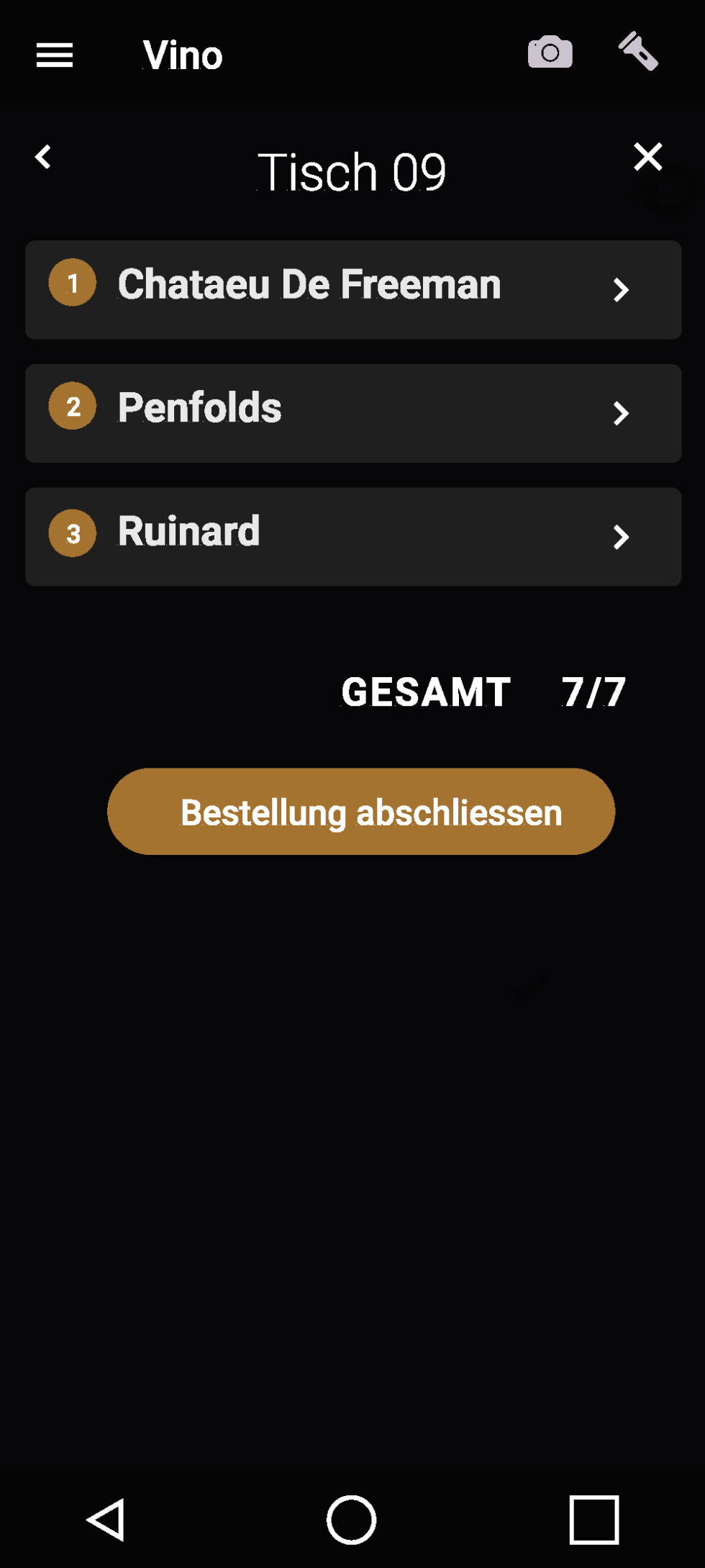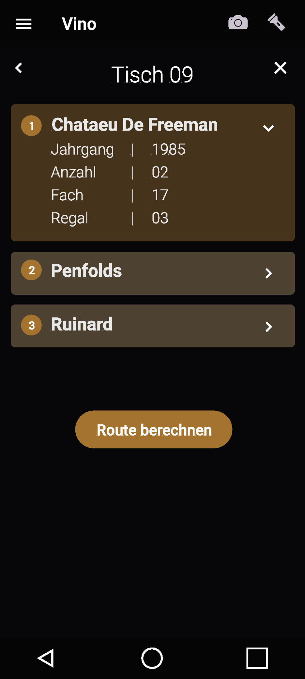 WINE STOCK APP for exquisite Restaurants with a big wine cellar. The app shows where in which shelf the desired wine bottles are located in the wine cellar. Furthermore, the shortest route to collect different bottles is displayed. The barcode scanner records the inventory and checks whether it is the right bottle and the right vintage. Each table order and the name of the staff who took the order is displayed on the app with time information.